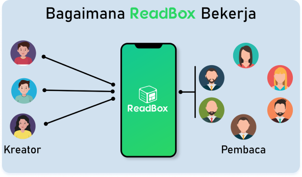 Kreator menciptakan karya komik atau novel lalu mengunggaanya di Readbox,lalu pembaca dapat mengakses karya tersebut melalui aplikasi maupun website ReadBox.