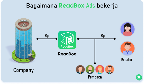 Keator dapat memiliki penghasilan melalui iklan yang akan ditampilkan oleh ReadBox dari para pengiklan yang ingin product nya ditampiin pada karyaa kreator.